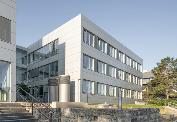 An den Südseiten der beiden Dachzentralen wurden Photovoltaikelemente in die Fassade integriert.