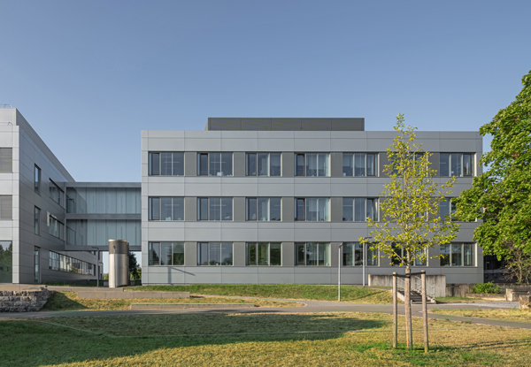Der Neubau für den Fachbereich Anorganischen Chemie präsentiert sich als dreigeschossiger, langgestreckter Gebäudekubus im Osten des Bestands und gliedert sich in die Campus-Situation ein. Parallel zum zentralen Altbau angeordnet wirkt der Neubau als modulare Erweiterung. Die Haupterschließung erfolgt vom Zentralbau C3 von Westen über eine zweigeschossige Brücke. Im Erdgeschoss wird die Anbindung als Foyer bis zur Ostfassade fortgeführt.