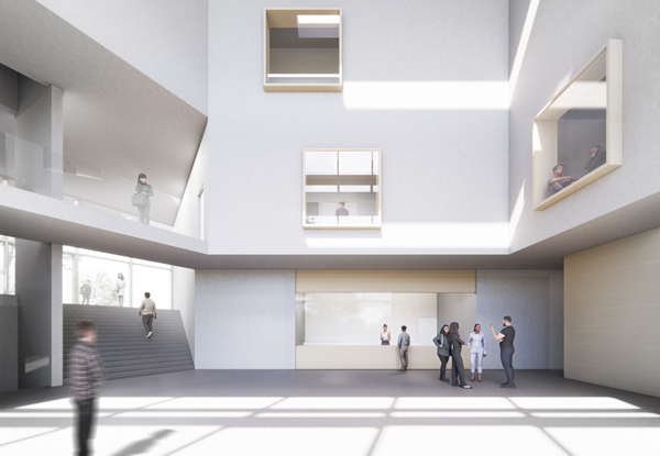 Alle Arbeitsräume sind natürlich belichtet. Neben Teeküchen und Besprechungsräumen sind in den Fluren weitere kommunikative Aufenthaltsbereiche mit Außenbezug vorgesehen.